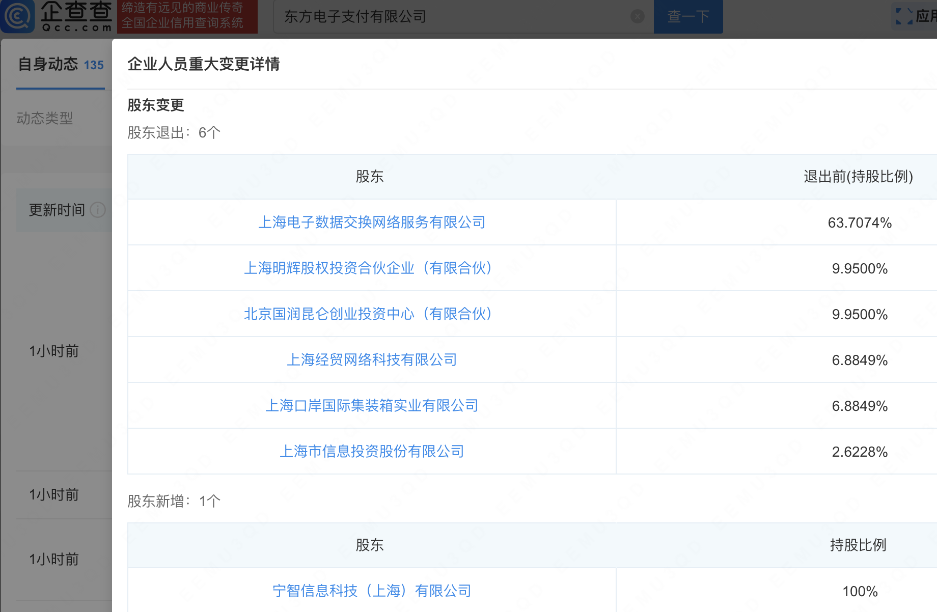 近日,支付机构东方电子支付有限公司发生工商变更,原股东均退出配资官方开户,新增小红书科技有限公司全资子公司宁智信息科技(上海)有限公司为股东,持股100%。企查查信息显示,该公司成立于2008年,注册资本2亿元,经营范围包含:非银行支付业务;通信设备销售;计算机软硬件及辅助设备零售等。公开信息显示,该公司是经中国人民银行批准获得《支付业务许可证》的第三方支付机构,初始业务类型为互联网支付,2024年8月起变更为储值账户运营Ⅰ类业务。