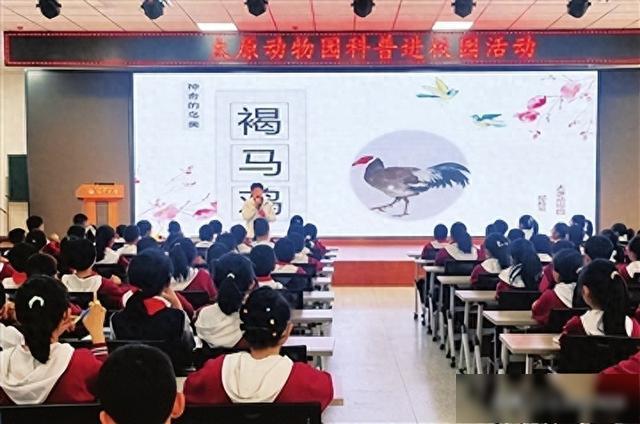 本报讯(见习记者 刘苗苗 文/摄)太原动物园日前联合“山西科学讲坛”科普小分队的志愿者走进东岗小学,开展“科普进校园”活动。太原动物园兽医师邢晓旭以“神奇的鸟类·褐马鸡”为题,为学生们带来了一场别开生面的自然科普课。