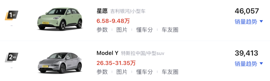 就拿8月的销量数据来说,去年上市的吉利星愿卖出了超4.6万台,比过了Model Y,是不用加任何定语的销冠。