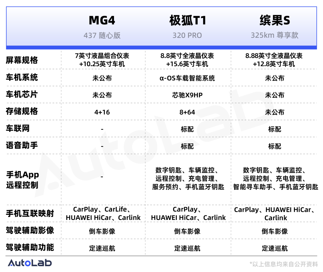 具体的车型上,我们选取了MG4、极狐T1以及缤果S这三款最近刚上市的新车。